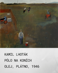 21. Václav Bartovský, Zahrada, olej, plátno, 1943 Dílo Václava Bartovského s názvem Zahrada z roku 1943 představuje vynikající ukázku české intimně laděné malby válečného období. Bartovský, klíčová postava Skupiny 42 a později souboru Trasa, v tomto obraze zkoumá hranice mezi civilismem a lyrickou abstrakcí. Obraz je vystavěn na principu vrstvení plánů. Popředí dominují vertikální linie subtilních keřů a travin, které tvoří jakousi průhledovou clonu k hlavnímu motivu stromu a domu v pozadí. Tato kompozice vtahuje diváka do tichého, uzavřeného mikrosvěta zahrady. Autor pracuje s úzkou, ale bohatě nuancovanou škálou tmavě zelených, tlumených modrých a okrových tónů. Bílá barva domu v pozadí funguje jako světelný akcent, který prosvětluje jinak melancholickou náladu díla. Tah štětcem je uvolněný, téměř impresionistický, ale s důrazem na plošnost a pevnou vnitřní stavbu. Bartovský zde neopisuje realitu detailně, ale spíše zachycuje atmosféru a světelný dojem okamžiku. Rok 1943 byl pro české umělce obdobím vnitřního exilu. Útěk k tématům zahrad, dvorů a tichých zákoutí byl častým způsobem, jak čelit úzkosti z válečné reality. Zahrada zde nepředstavuje jen botanický prostor, ale symbolizuje bezpečí, soukromí a tichou kontemplaci. Přestože je Bartovský spojován s civilismem Skupiny 42, jeho pojetí je mnohem více introspektivní a poetické. Na rozdíl od technicistních motivů svých kolegů se Bartovský soustředí na vztah člověka k bezprostřednímu okolí a na „všednost“, která je povýšena na umělecký objekt. V díle je patrná inspirace francouzským postimpresionismem (např. Pierrem Bonnardem) v důrazu na intimitu a barvu jako nositelku nálad. Zahrada je důkazem Bartovského schopnosti najít v obyčejném námětu hluboký psychologický rozměr. Obraz není pouhou krajinomalbou, ale meditací o klidu a řádu uprostřed neklidné doby. Pro autora je typická právě tato střídmost výrazu, která však v divákovi zanechává silný emotivní dojem.