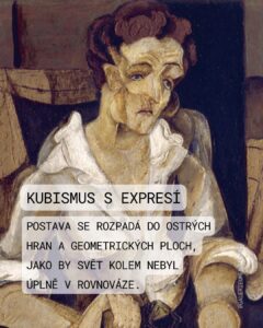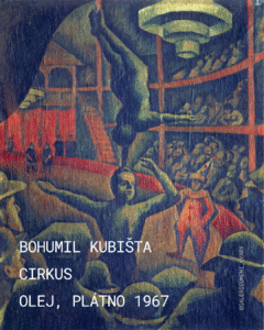 3. Bohumil Kubišta, Cirkus, olej, plátno, 1911 Dílo „Cirkus“ je stěžejním příkladem českého kuboexpresionismu, syntézy, kterou Bohumil Kubišta – jeden ze zakladatelů moderního českého umění prosazoval. Balancující figury artistů jsou umístěny na vertikální ose obrazu, což poutá pozornost a vytváří dominantní akcent. Horizontální linie lóží s diváky toto vertikální napětí vyvažují. Kubišta redukuje barevnou paletu na dokonale promyšlené střídání dvou barev: základní červené a doplňkové zelené. Modelace temnými odstíny a vzájemné působení těchto barev dodává výjevu mimořádnou působivost a expresivitu, která byla v českém malířství v té době nevídaným a novým jevem. Obraz Cirkus tak není pouhým zobrazením manéže, ale energetickým polem a manifestem Kubištova teoretického a výtvarného úsilí o nalezení nového, racionálně budovaného uměleckého řádu. Kubišta, který tragicky zemřel v roce 1918 na španělskou chřipku, jím zanechal jeden z vrcholů české moderny.