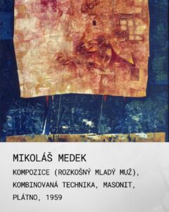 14. Mikuláš Medek, Kompozice (Rozkošný mladý muž), kombinovaná technika, masonit, plátno, 1959