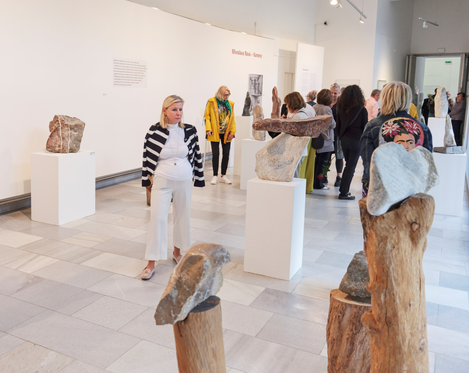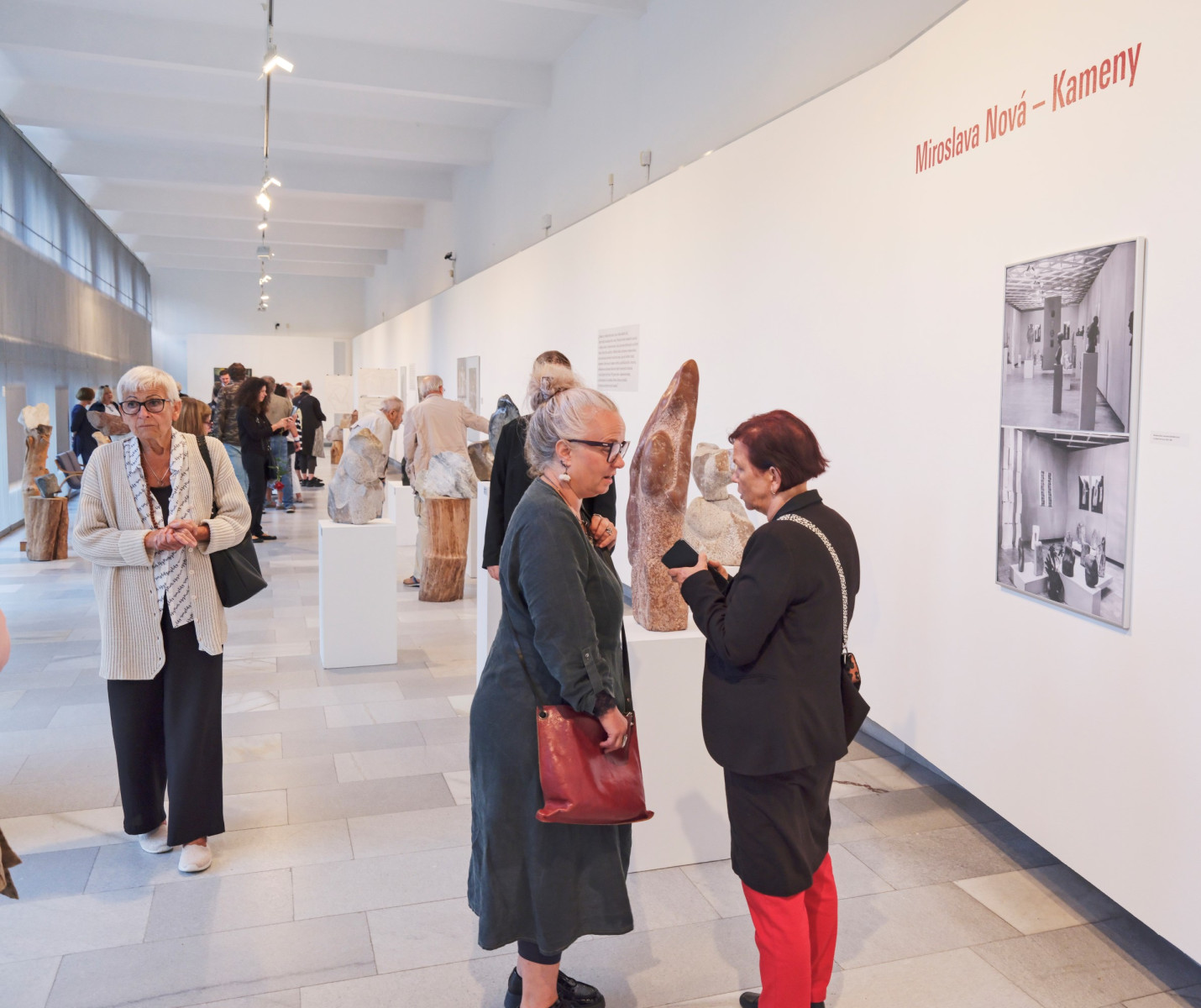 Miroslava Nová (1935), významná plzeňská sochařka a medailérka, letos oslavila devadesáté narozeniny. Její jubilejní výstava představuje vrcholnou část tvorby – mramorové realizace, které od 80. let nazývá Kameny. Nová je členkou Asociace umělců medailérů i mezinárodního společenství FIDEM, dlouhá léta se věnovala také pedagogické činnosti. Její práce s mramorem ze Slivence, Mořiny či Nehodiva se vyznačuje dialogem s kamenem, respektem k jeho geologické paměti a schopností citlivě vyjevovat estetické síly ukryté v jeho struktuře a barevnosti. Vytváří abstrahované solitéry i seskupení, která vynikají stabilitou, monumentalitou a výtvarnou citlivostí.