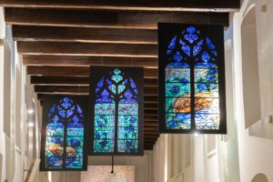 Přednáška historičky umění Charlotte Zimové přiblíží opomíjenou sklářskou tvorbu Josefa Šímy, mj. vitráže pro kostel sv. Jakuba v Remeši či nerealizovaný projekt vitráží pro Vřídelní kolonádu v Karlových Varech.