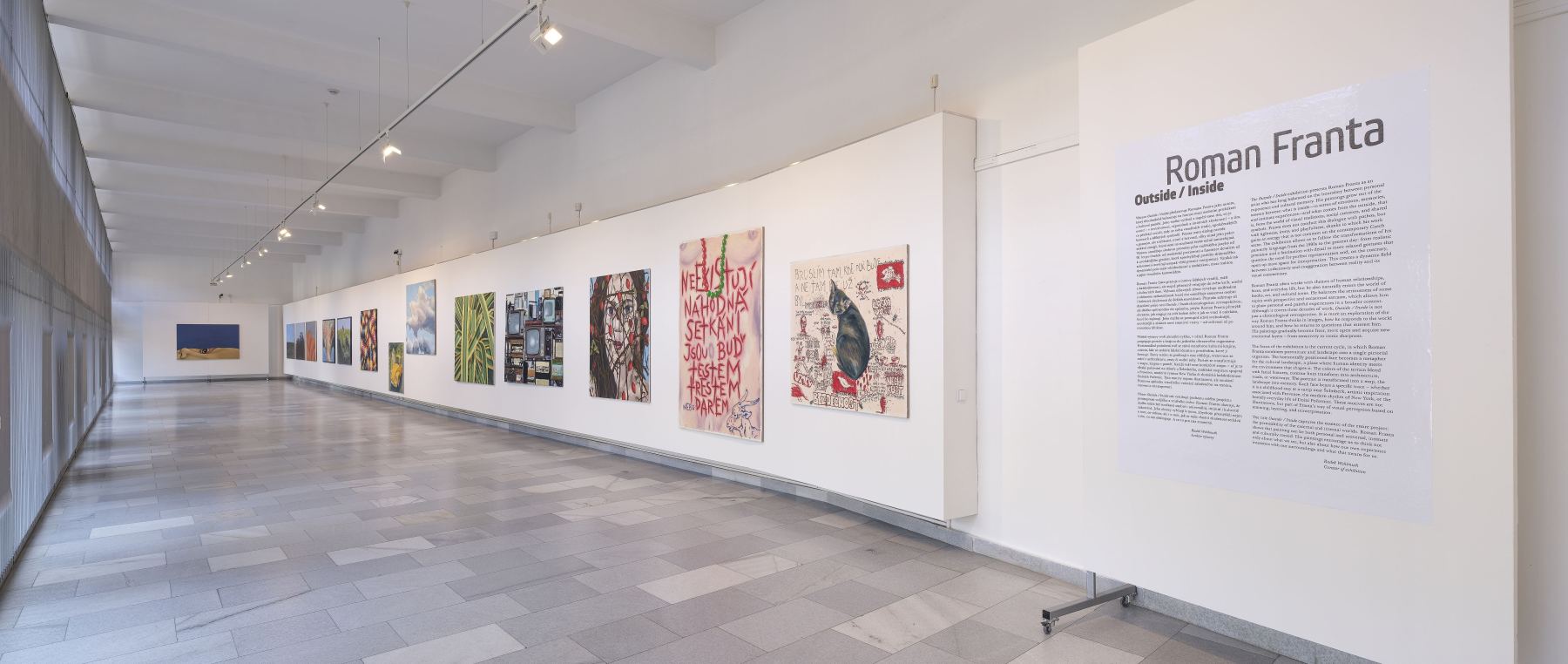 Výstava přiblíží tvorbu významného českého malíře Romana Franty (1962), který se do širšího diváckého povědomí zapsal sérií hmyzích obrazů, za níž byl nominován na Cenu Jindřicha Chalupeckého. Od pozdních 90. let působil jako docent na AVU a nyní předává své zkušenosti na Art & Design Institutu. Výstava Outside / Inside představuje výběrovou retrospektivu, která volně sleduje tvorbu Romana Franty od 90. let po současnost. Autor otevírá odlehčený dialog mezi vnitřním a vnějším světem, mezi osobní zkušeností a kulturní pamětí. Jeho práce jsou sice ukotvené v realitě, ale oscilují mezi hyperrealistickými tendencemi a lapidární malbou, čímž vytvářejí někdy až absurdní kontrast mezi přesností detailu a zkratkou malířského gesta. Lidské vztahy, tváře, odkazy na knihy nebo dějiny umění zpracovává Roman Franta s ironickým nadhledem, ale zároveň s vědomím vážnosti témat, která se dotýkají lidské existence i kulturní tradice. Ironie je u něj prostředkem reflexe, nikoli úniku.   Outside / Inside není jen prostým přehledem autorovy dosavadní tvorby, ale i sondou do proměn jeho malířského jazyka a vizuálního přemítání během posledních tří dekád. Roman Franta ukazuje, že malba může být současně rozjímavá i hravá, hodnotící i neformální, a také horizonty, které otevírá, jsou vždy dvojí: osobní i univerzální.   Doprovodný program: